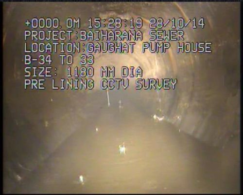 The sewer line of 700 mm dia. Using RCC NP3 was laid in Rampur city, which was connected to the sump well in the treatment plant. For some reasons the sewer line could not be commissioned for about 7/8 years and by the time the infrastructure was ready for the sewer to be commissioned, sewer line started settling, due to heavy ground water infiltration. This infiltration caused the send to flow in with the water causing the ground above the sewerline to settle posing the danger to nearby residential houses and buildings. Also the road had to be closed for traffic due to frequent settlements.